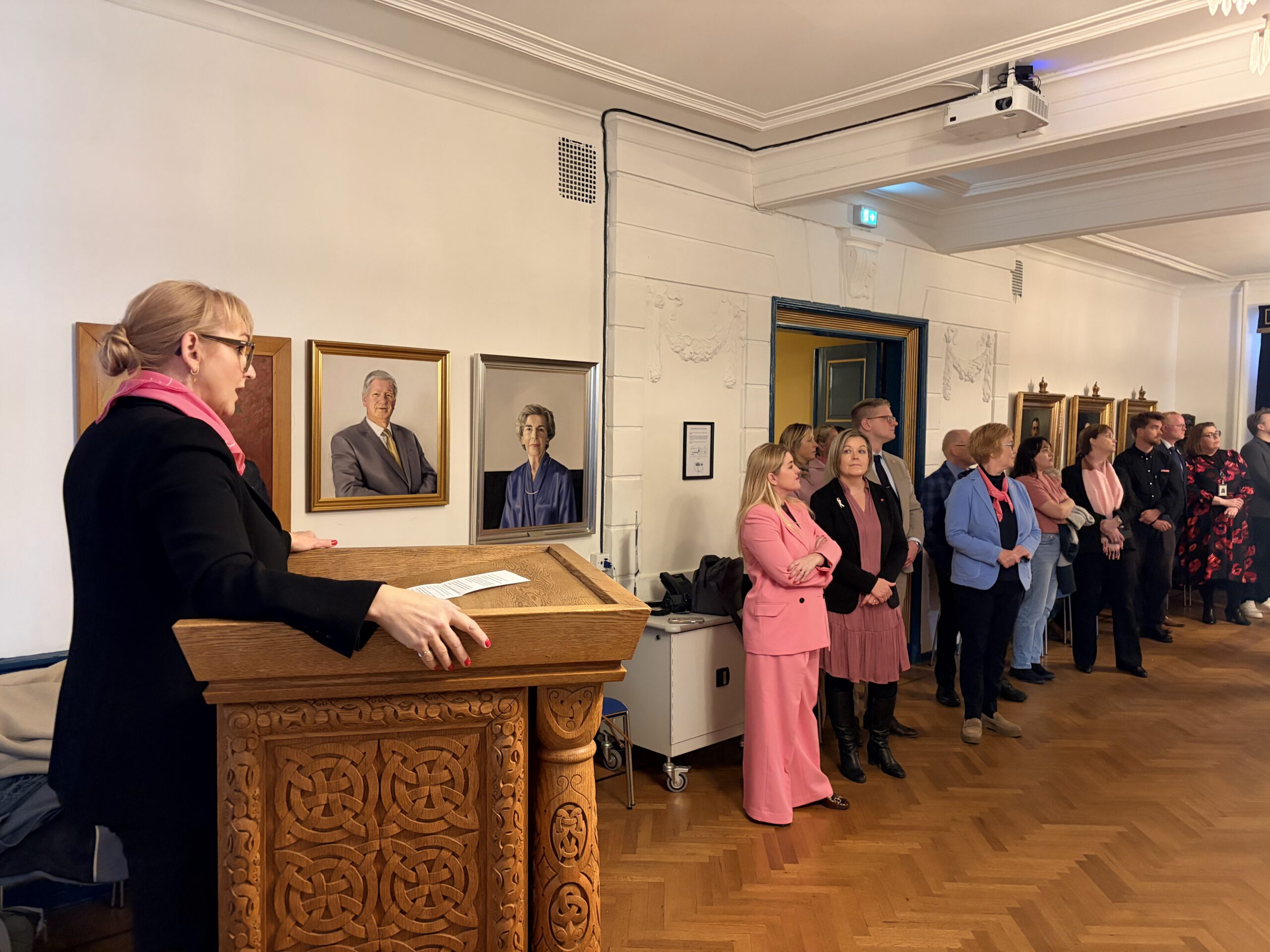 Alþingi færði MR minningarskjöld í tilefni af því að 150 ár eru liðin frá fyrsta löggjafarþingi Íslendinga eftir að Alþingi var endurreist, 1. júlí 1875. Sama ár var skrifstofa Alþingis stofnuð með yfirlýsingu Jóns Sigurðssonar forseta. Þórunn Sveinbjarnardóttir forseti Alþingis flutti ávarp þar sem hún minnti á hlutverk Lærða skólans í sjálfstæðisbaráttu landsmanna.